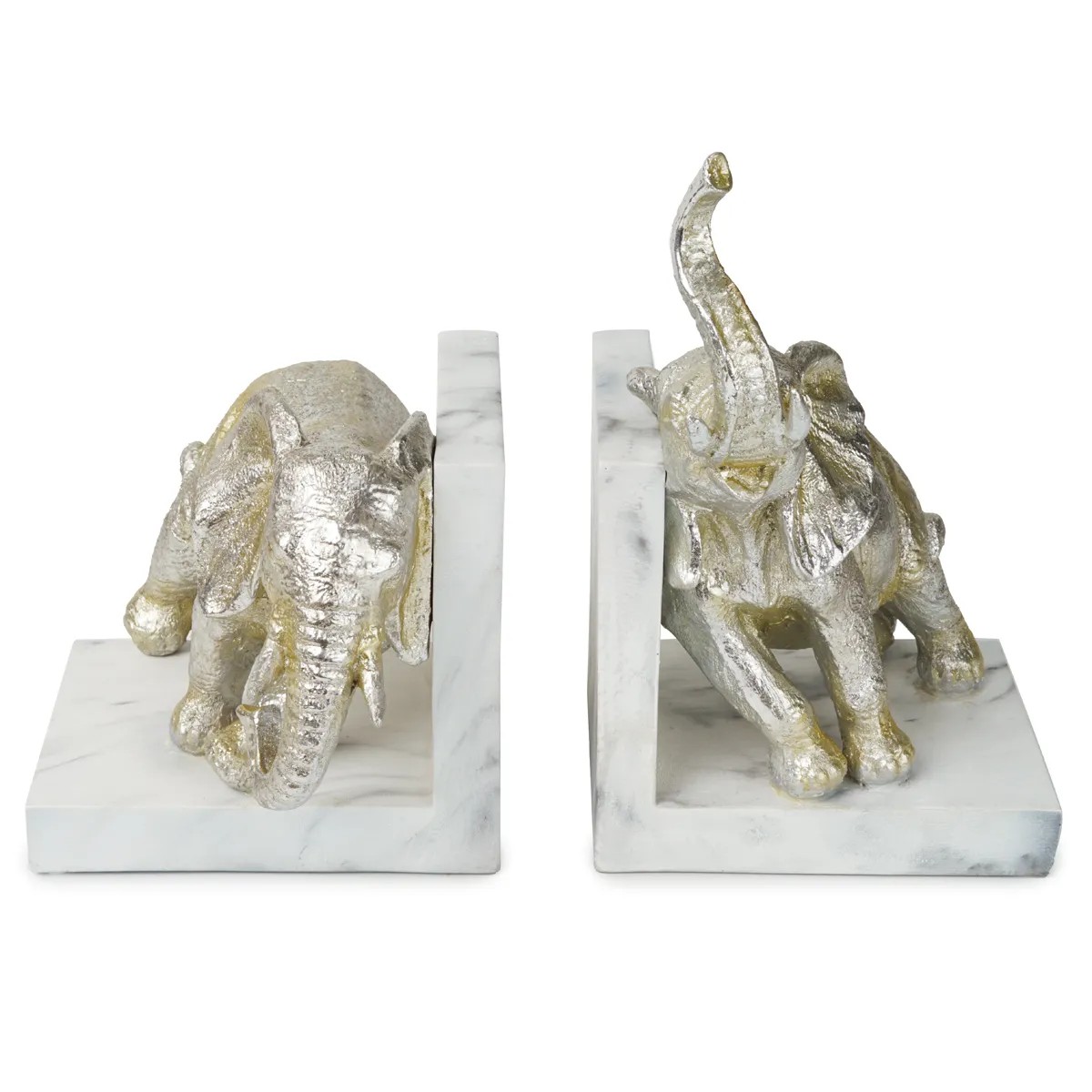 Porta Livros Elefante Resina Dourado 25x30x11,5cm – Conjunto com 2 Peças