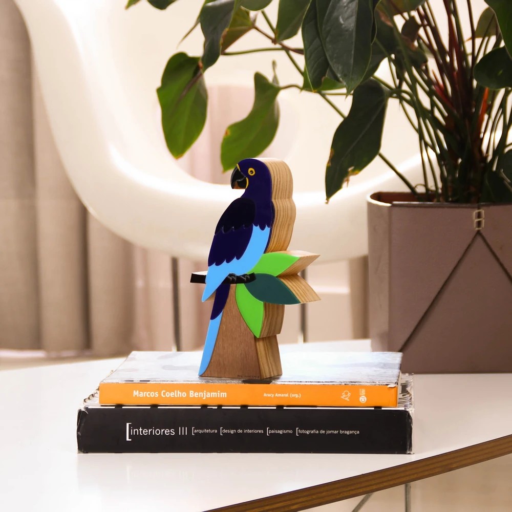 A Escultura Arara Azul é uma peça artesanal que leva para o seu ambiente um pedaço da exuberante fauna brasileira. Mais do que um simples item decorativo, ela representa de forma vívida e elegante a beleza e a importância da biodiversidade nacional. Produzida em madeira de reflorestamento com detalhes em marchetaria de acrílico, é finalizada manualmente com cera de abelha, garantindo um toque suave e aroma natural. Ideal para presentear amantes da natureza ou para compor a decoração de salas, escritórios e espaços temáticos, unindo arte, brasilidade e consciência ambiental.