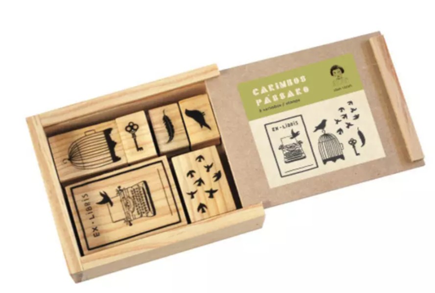 • Conteúdo: 6 carimbos de borracha com base de madeira