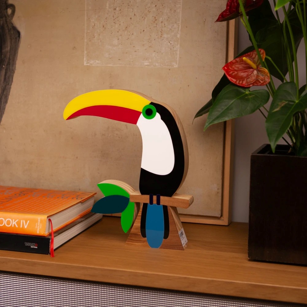 A Escultura Pássaro Tucano é uma peça artesanal vibrante que leva para sua decoração toda a alegria e tropicalidade da fauna brasileira. Com cores vivas e design estilizado, ela transmite o encanto das florestas tropicais e a beleza única dessa ave icônica. Produzida em madeira de reflorestamento com detalhes em marchetaria de acrílico, recebe acabamento manual com cera de abelha, garantindo toque suave, aroma natural e durabilidade. Ideal para presentear amantes da natureza ou para dar um toque de brasilidade a qualquer ambiente.