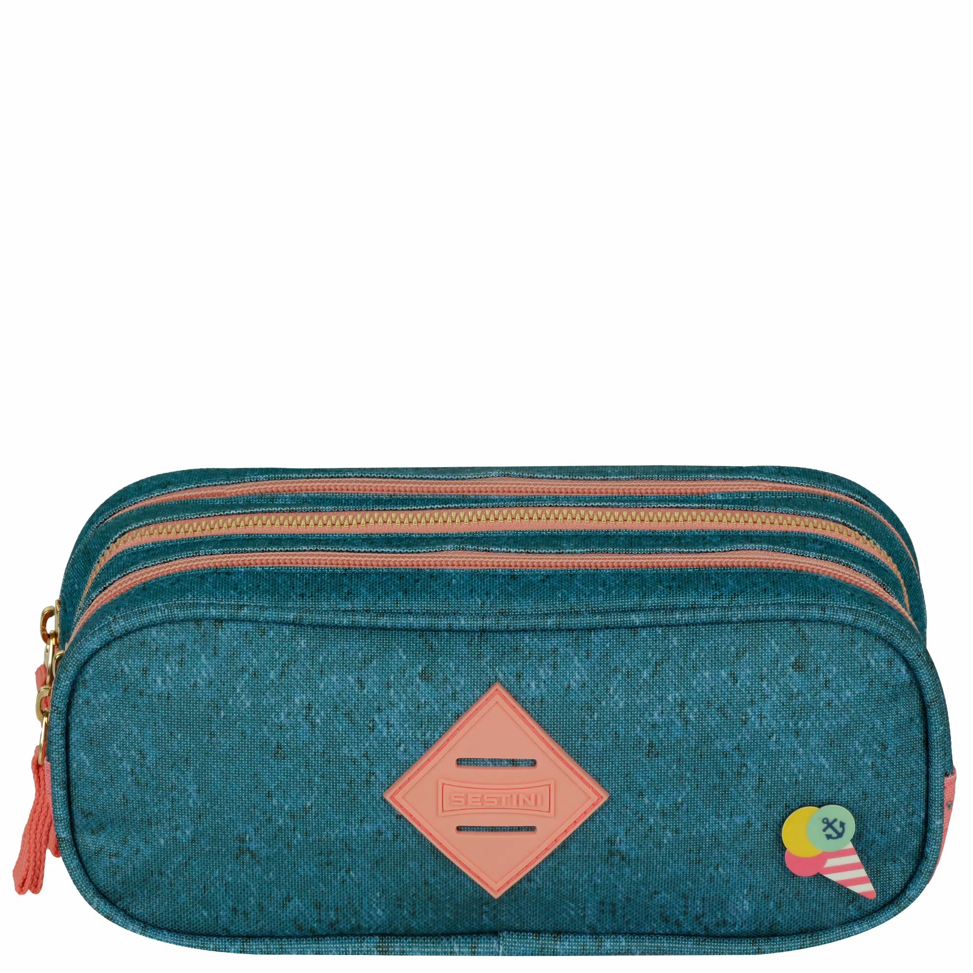 ESTOJO SESTINI AZUL C/ROSA 3 COMPARTIMENTOS