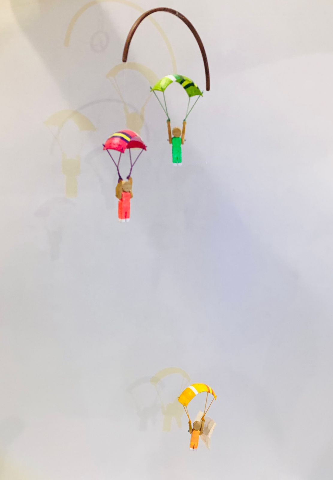 O Móbile Avião Paraquedas é uma peça decorativa encantadora que traz leveza e movimento ao ambiente. Com figuras de paraquedistas suspensos por cordões e paraquedas coloridos, ele simula uma cena aérea divertida e criativa. Ideal para quartos infantis, espaços lúdicos ou como presente original, esse móbile estimula a imaginação e adiciona um toque de aventura à decoração.