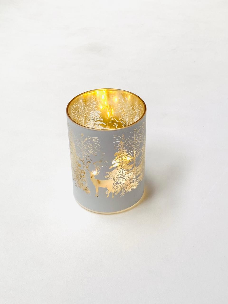 Traga o encanto das noites de inverno para sua decoração com o Pote Decorativo Natalino Floresta com LED. Com acabamento fosco e interior dourado, este pote cria um efeito luminoso acolhedor ao acender, revelando uma cena de floresta com árvores e cervos em detalhes dourados. Ideal para compor ambientes natalinos com sofisticação e serenidade.