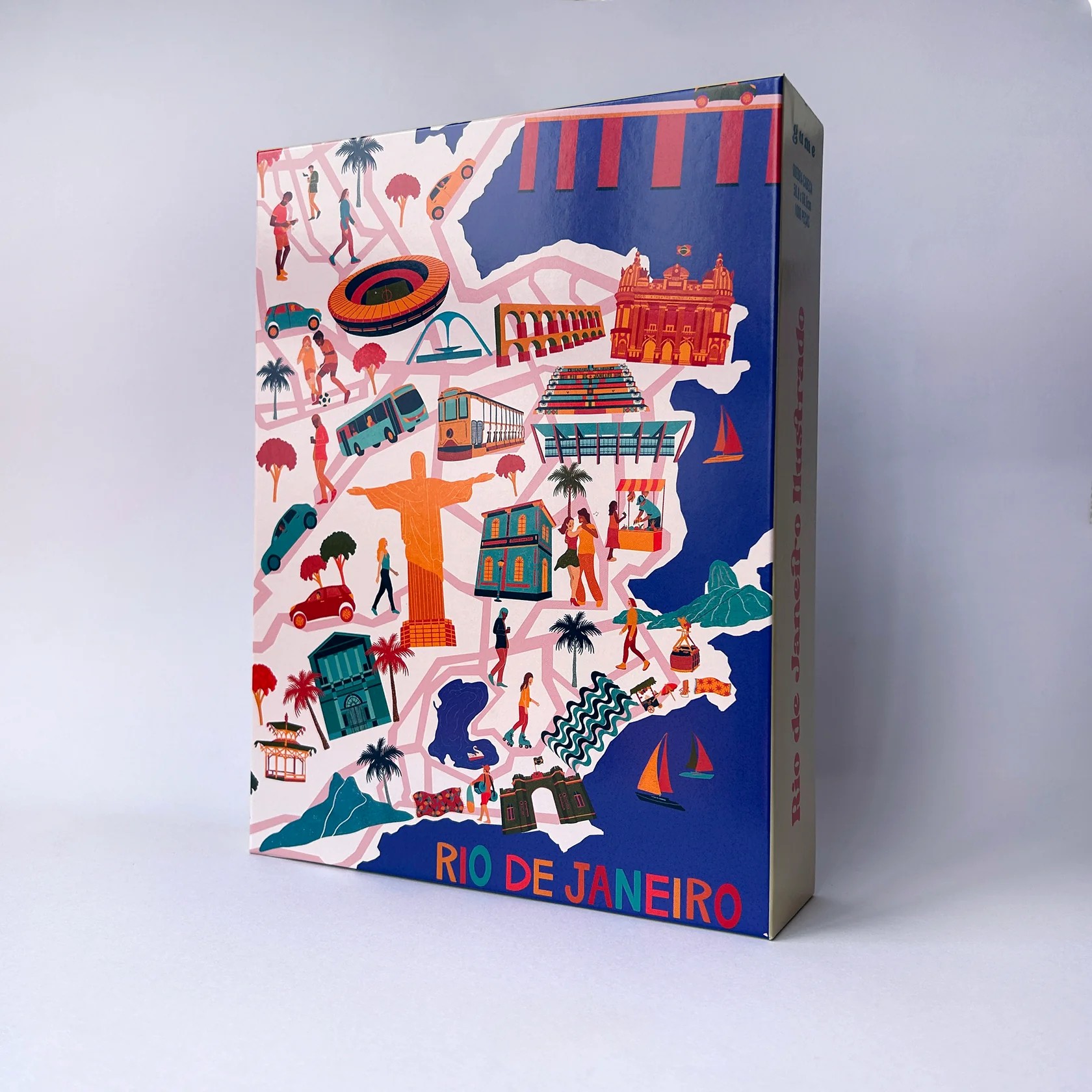 Descubra a Cidade Maravilhosa peça por peça com este quebra-cabeça de 1000 peças, ilustrado por Bárbara Dantas. O mapa apresenta uma interpretação artística livre do Rio de Janeiro, sem compromisso com a escala ou localização real dos pontos turísticos, revelando ícones como o Cristo Redentor, o Pão de Açúcar, as praias de Copacabana e Ipanema, e a Lapa com seus famosos arcos. Ideal para desafiar a mente, relaxar e, ao final, decorar seu espaço com uma obra vibrante e cheia de personalidade.