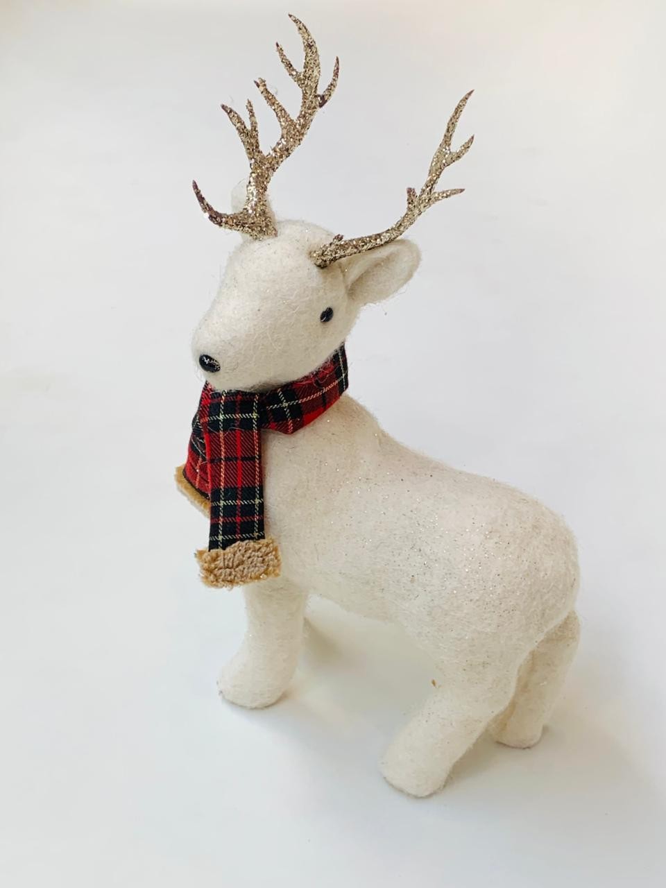 Encante sua decoração com a Rena Branca Brilhante de Natal, uma peça delicada e festiva que traz o espírito do Natal com charme e suavidade. Com acabamento aveludado, detalhes em glitter e cachecol xadrez, essa rena é perfeita para compor cenários natalinos acolhedores e sofisticados.
